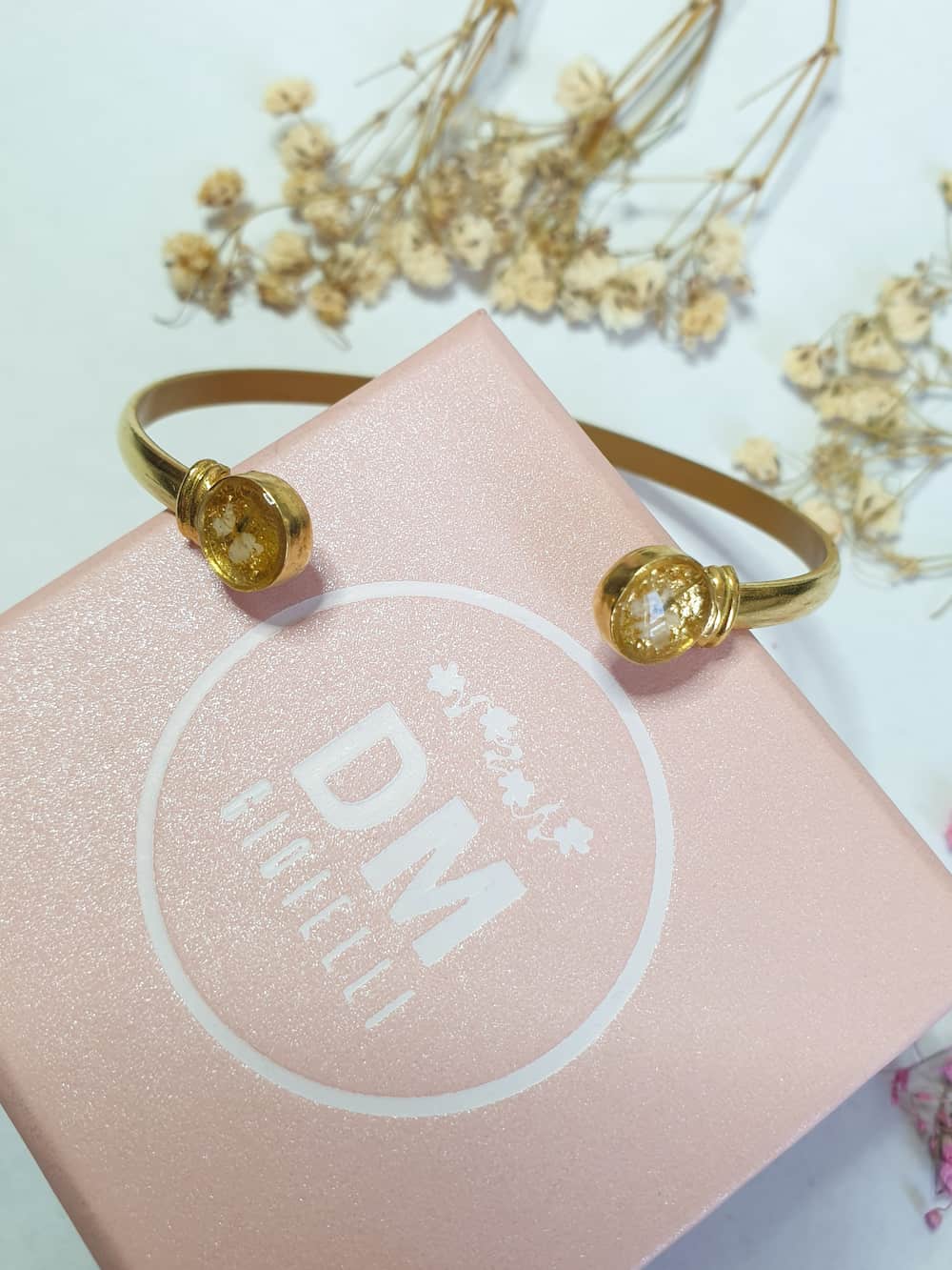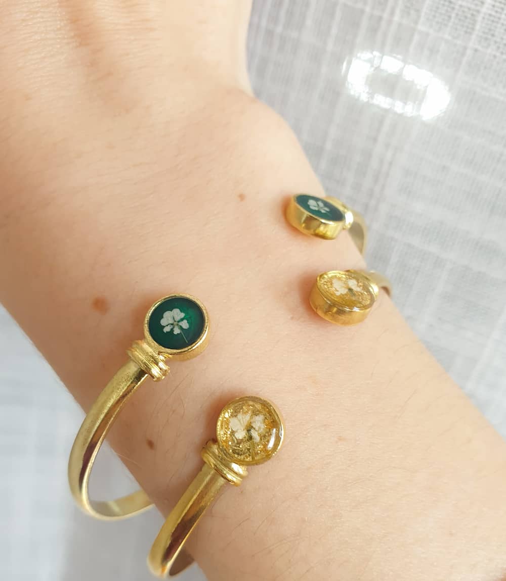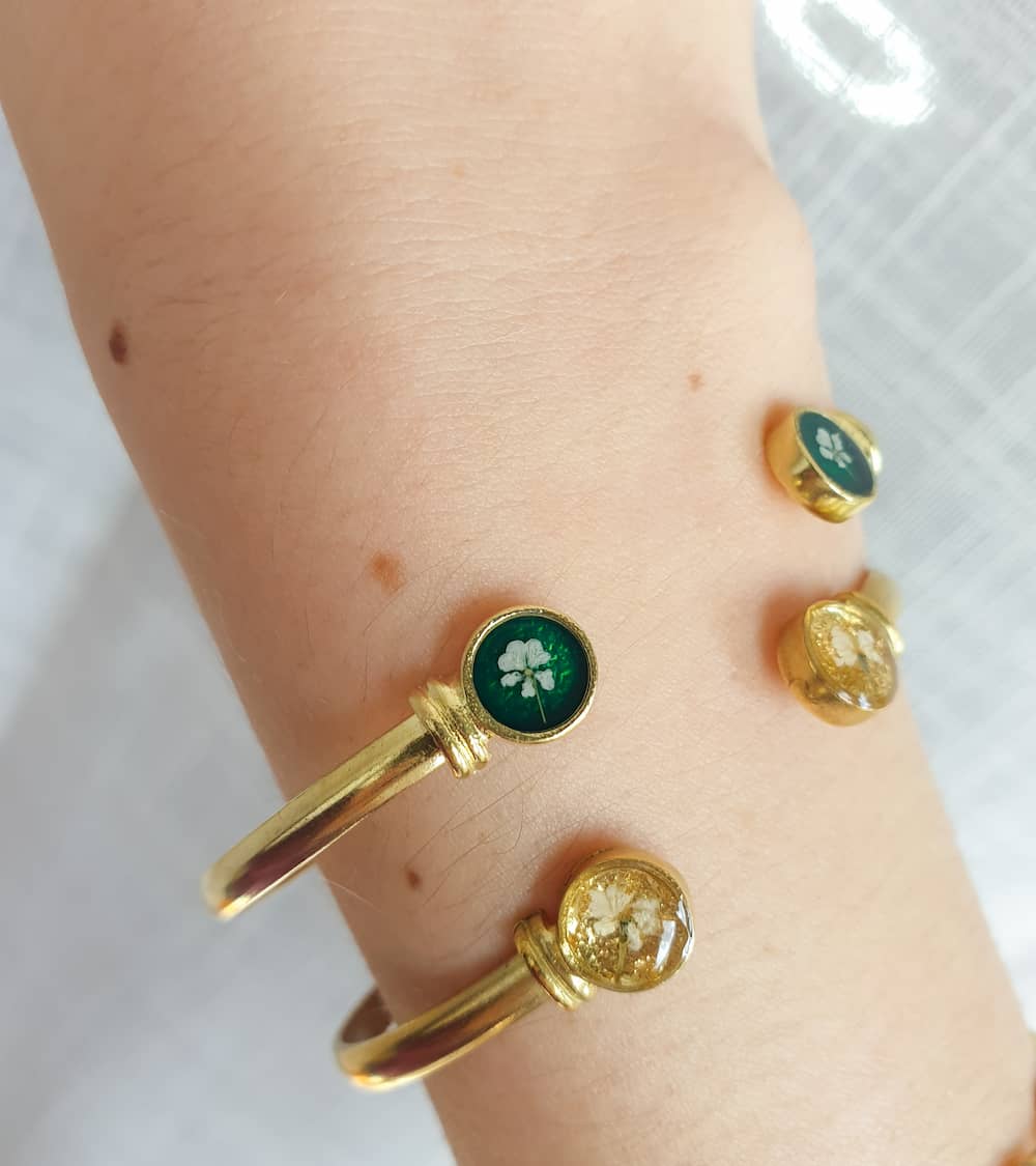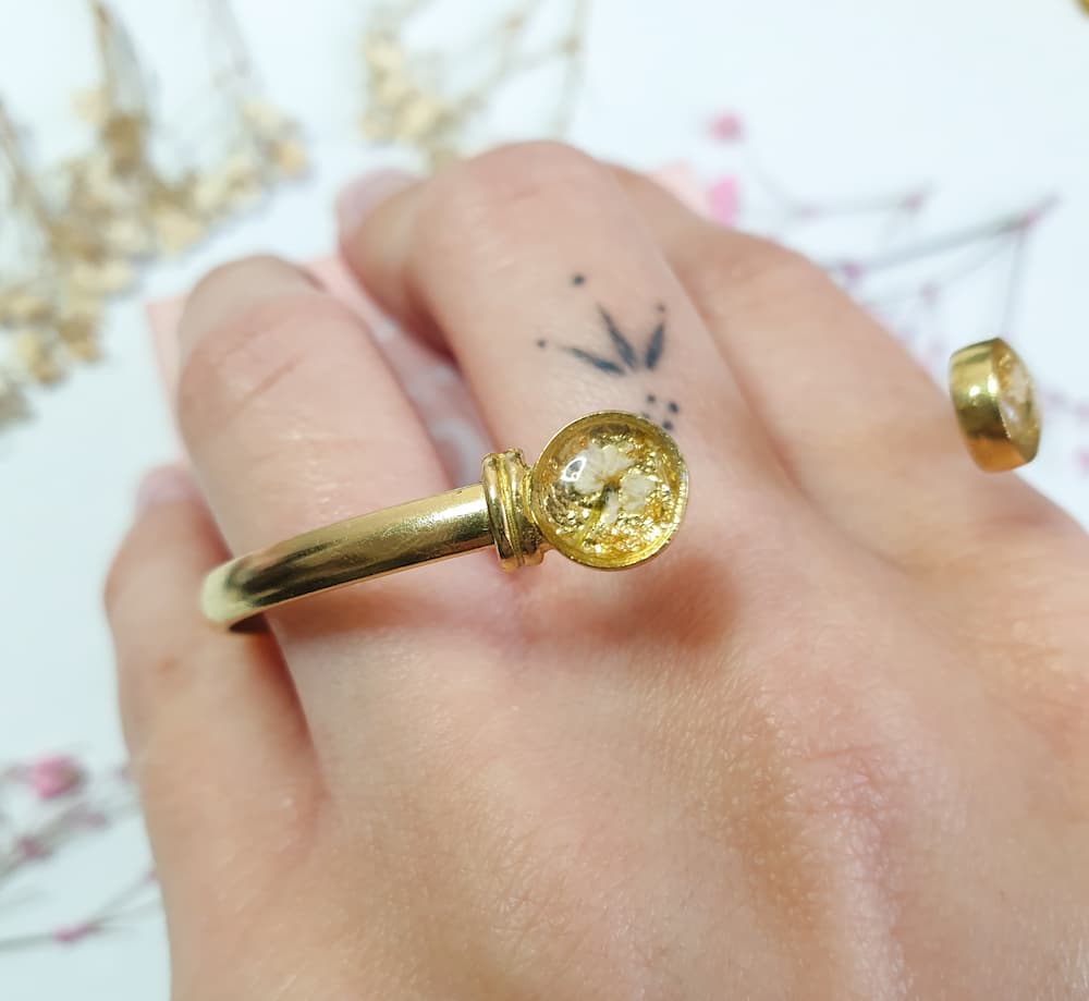 Materials: resin, stainless steel, plated brass, real flowers