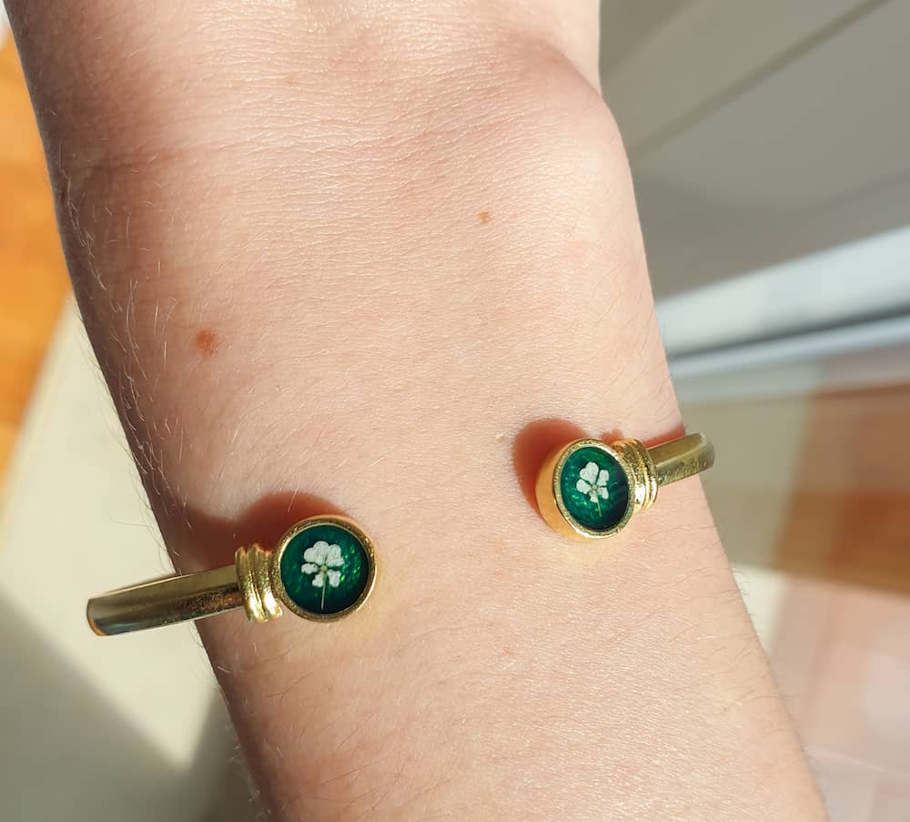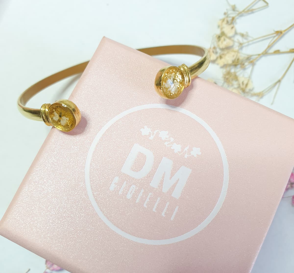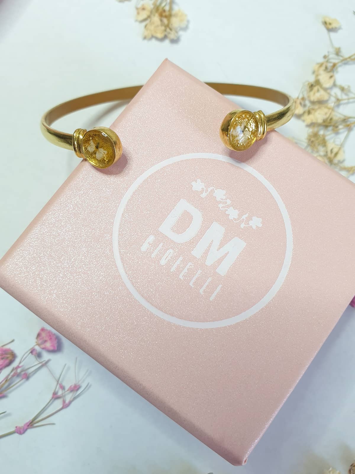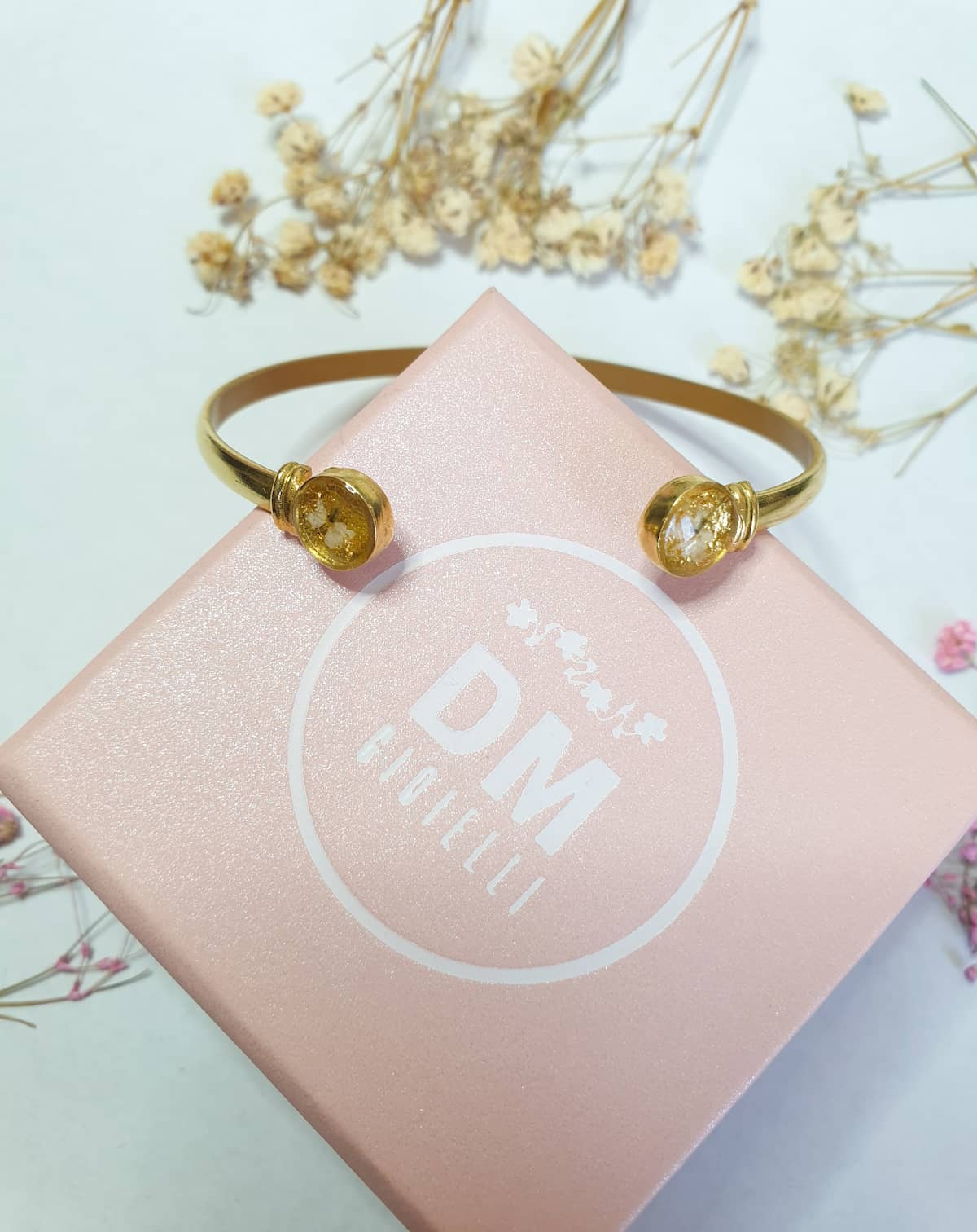 Materials: resin, stainless steel, plated brass, real flowers