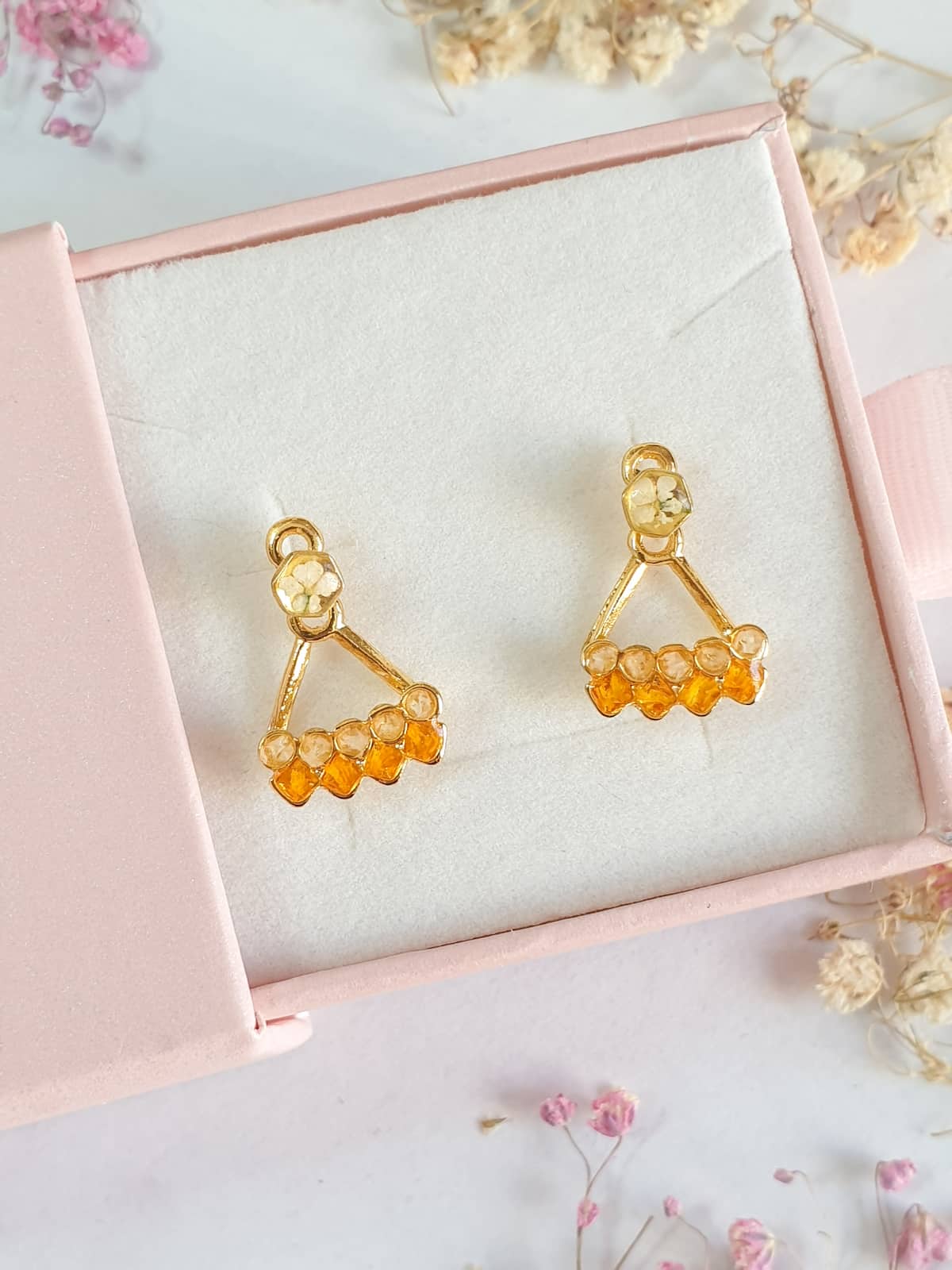 Sold individually or as a pair. One-of-a-kind piece. The jewelry may vary slightly from the photos, depending on the flower. Customizable upon request.