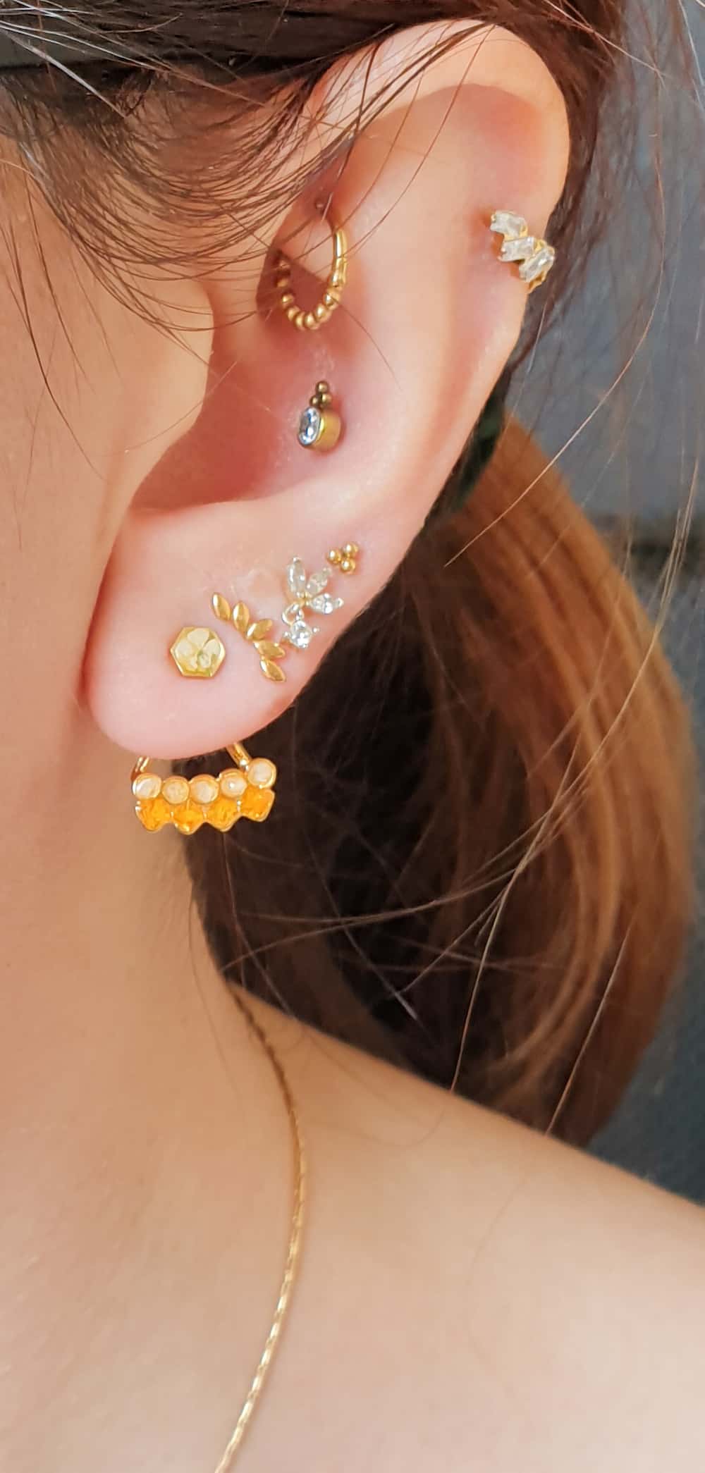 3 wearability options , so that the jacket can adhere more or less to the earlobe according to your preference (in the photo you can see the difference between the 3 'lengths')