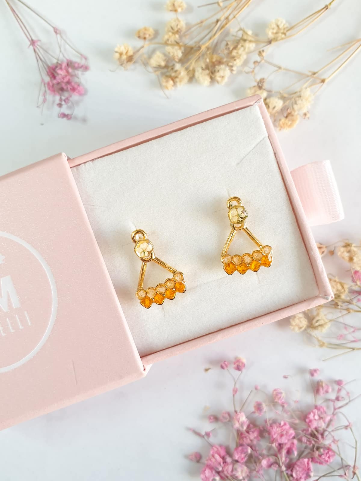 This creation includes 2 pairs of earrings as it can be worn both as an ear jacket and as simple lobe earrings ( Cecilia earrings ).